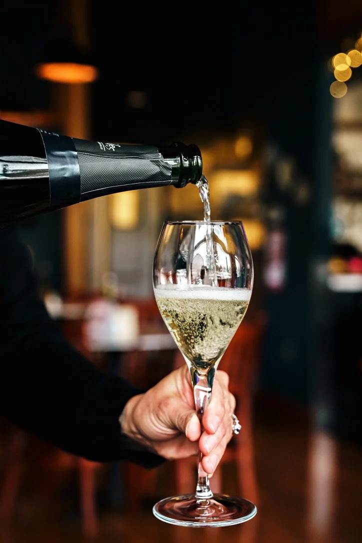 • Pouring a glass of champagne.