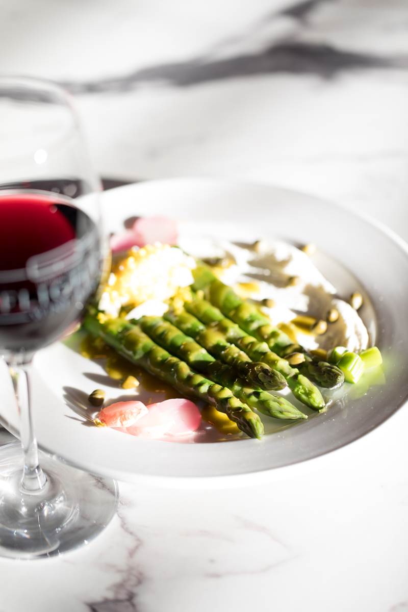 • Asparagus appetizer paired with a red wine at Bistro Colette.