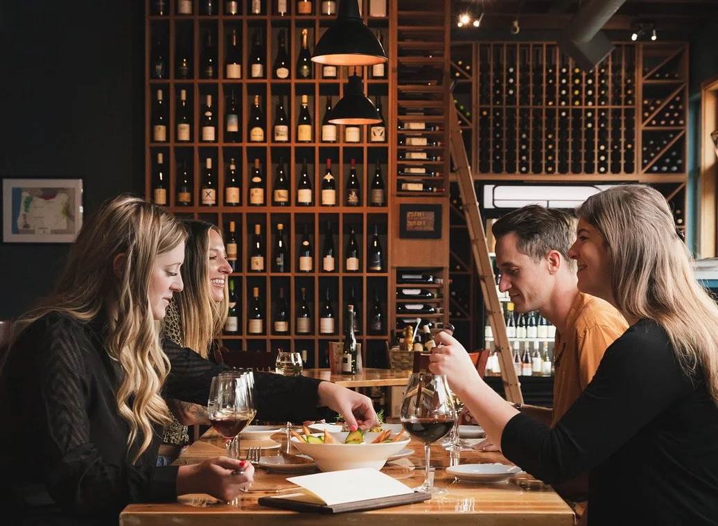 • Guests enjoying a meal with wine at Flights.