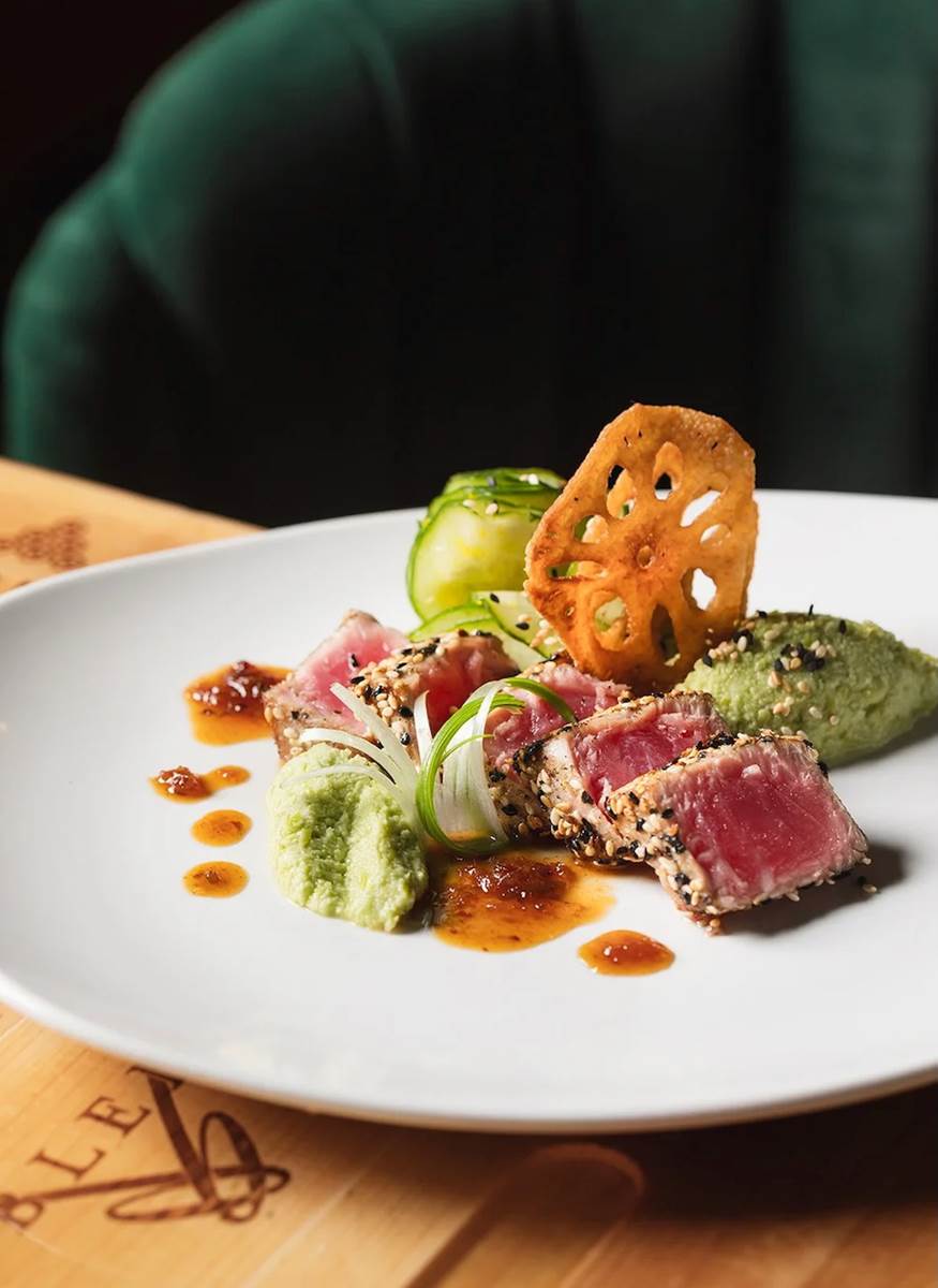 • Tuna dish prepared medium rare.